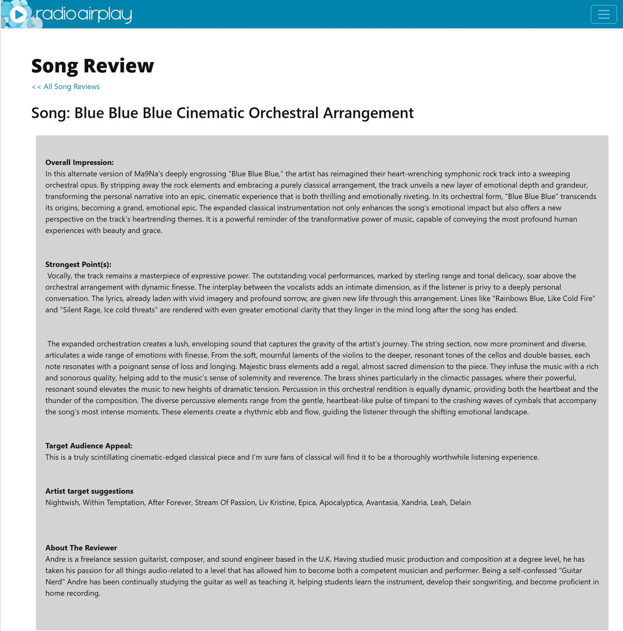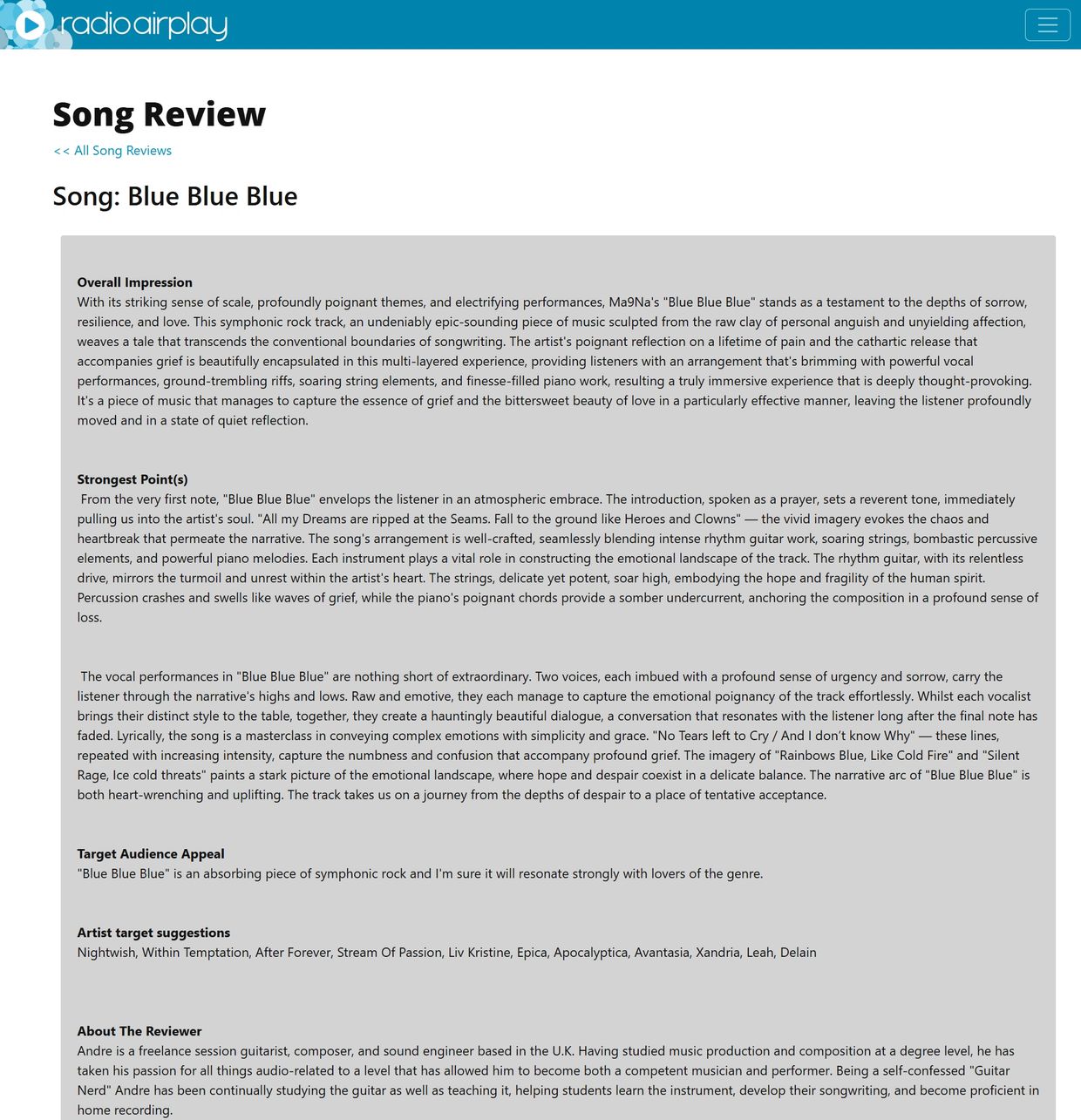 Another stellar review for a Ma9Na creation which is also featured on this very unique Internet radio station